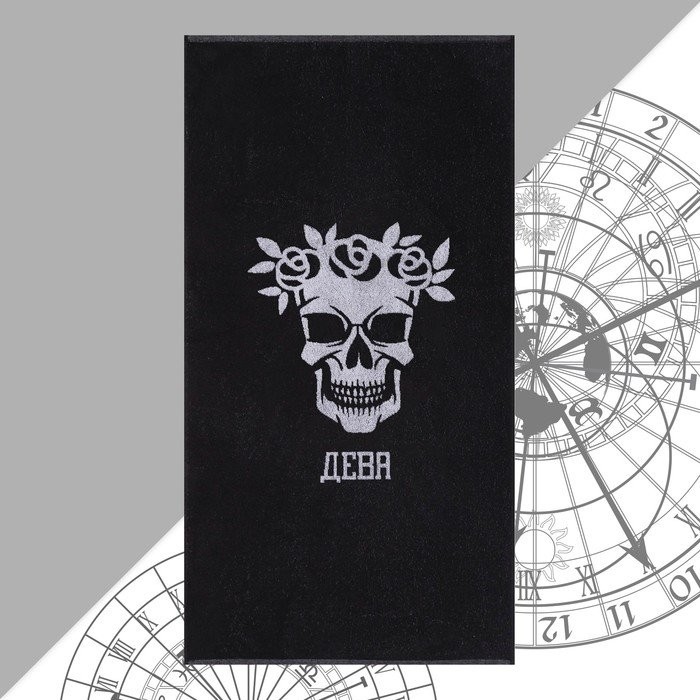 Полотенце махровое Этель «Знаки зодиака: Дева» чёрный, 67×130 см, 420 гр/м2, 100% хлопок