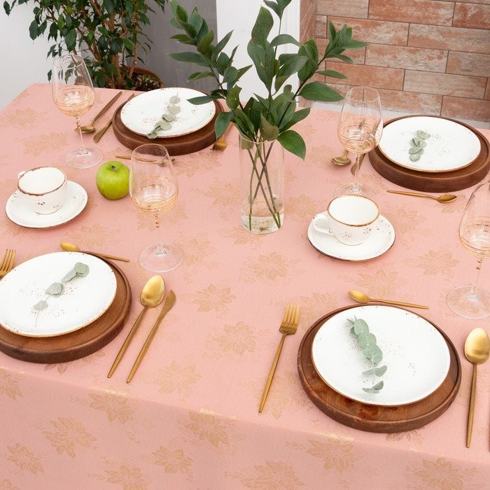Скатерть Этель «Пуансеттия» цв.розовый, 142*283 +/-3 см, 115 ±10 гр,100% п/э