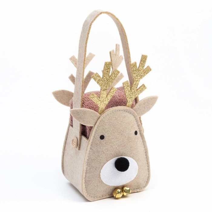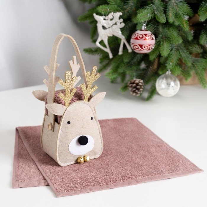 Полотенце в корзинке Экономь и Я «Олень» 30*60 см, цв. мокко, 100%хл, 320 г/м2