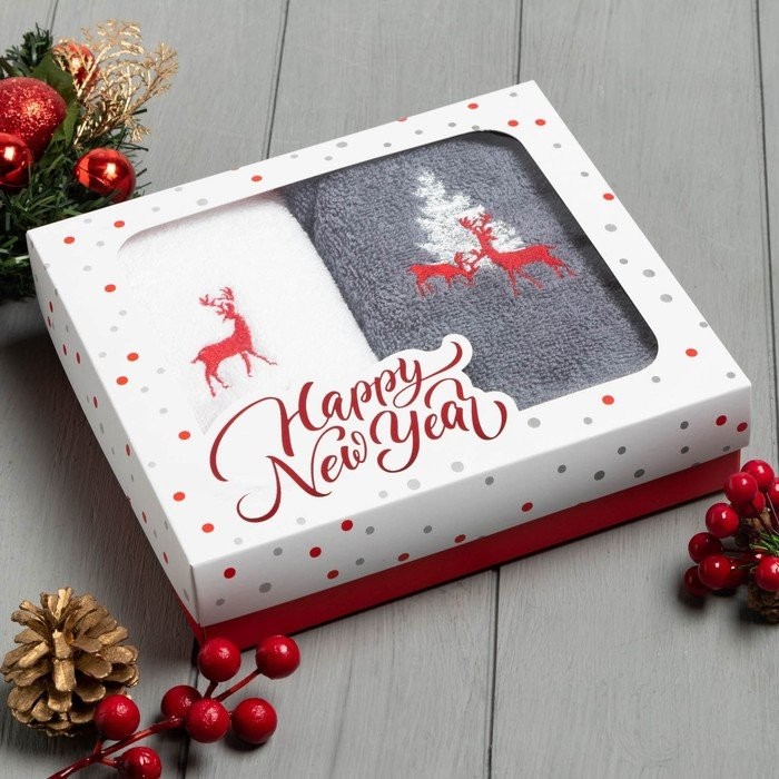 Набор полотенец Этель «Олени» 30×60 см-2шт, 100% хлопок 340 г/м2
