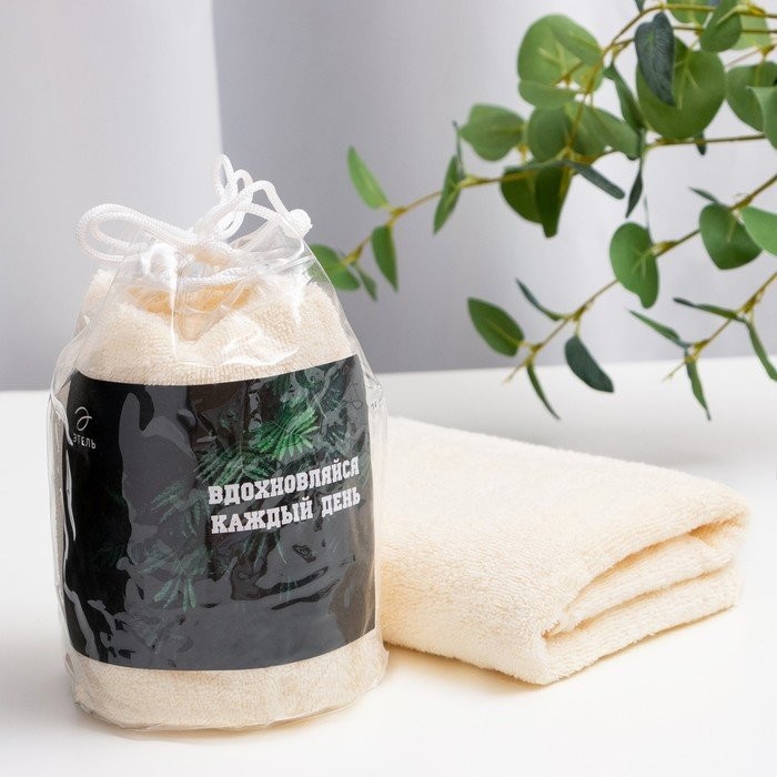 Полотенце подарочное Этель «Вдохновляйся» цв.молочный, 50х90см, 100% хл, 340 г/м2