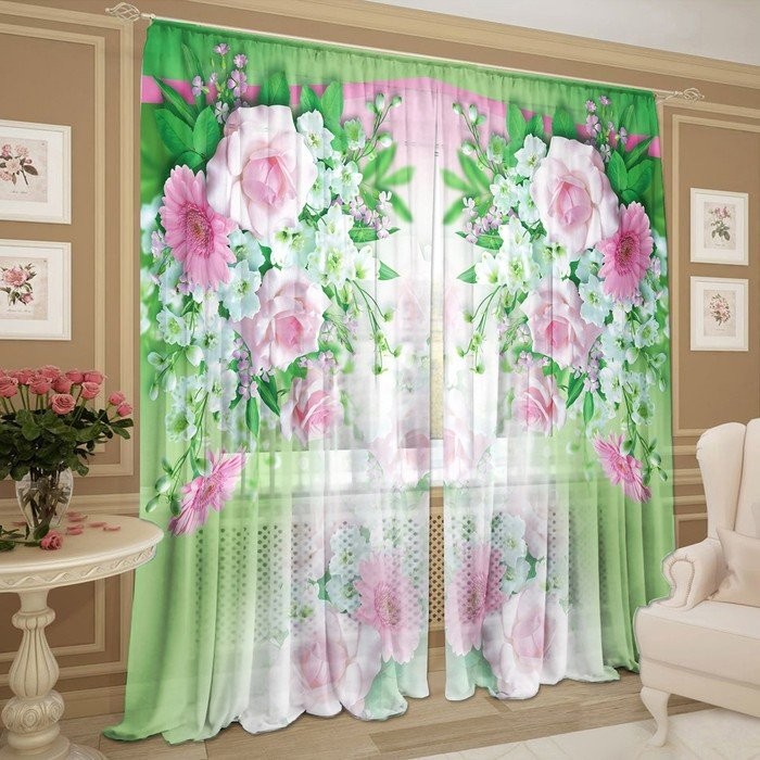 Тип тюли: Готовый, С рисунком, С цветами