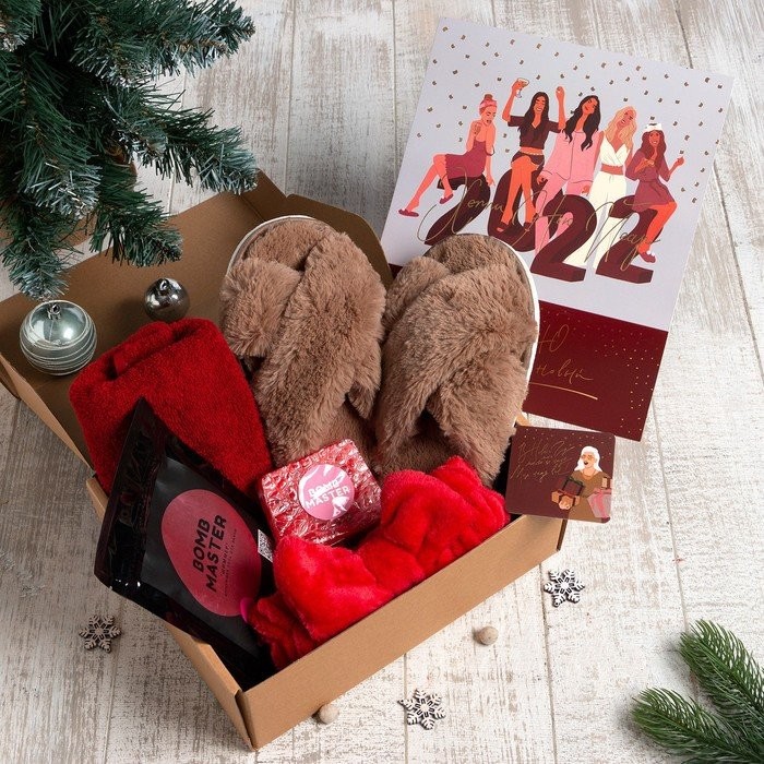Подарочный набор новогодний Этель «Хэппи нью Йеар» полотенце 30х60см и аксессуары (4 предм)