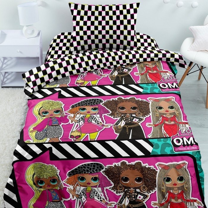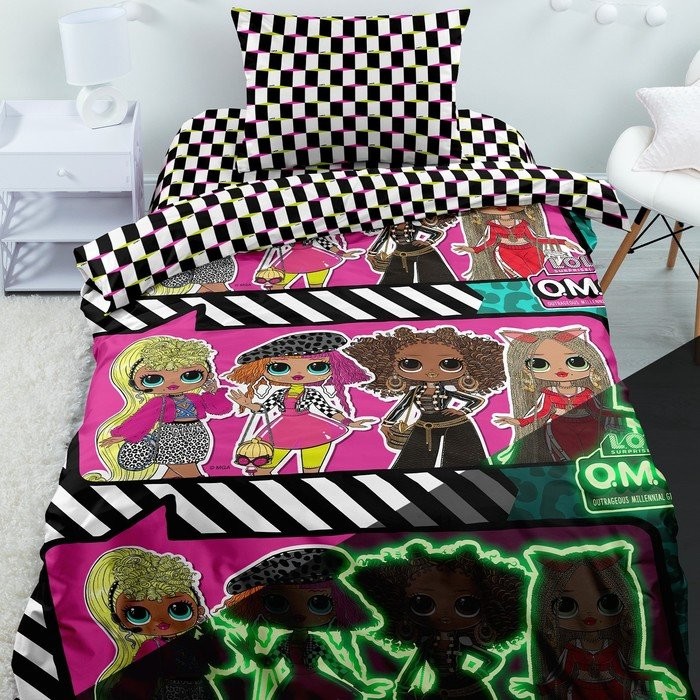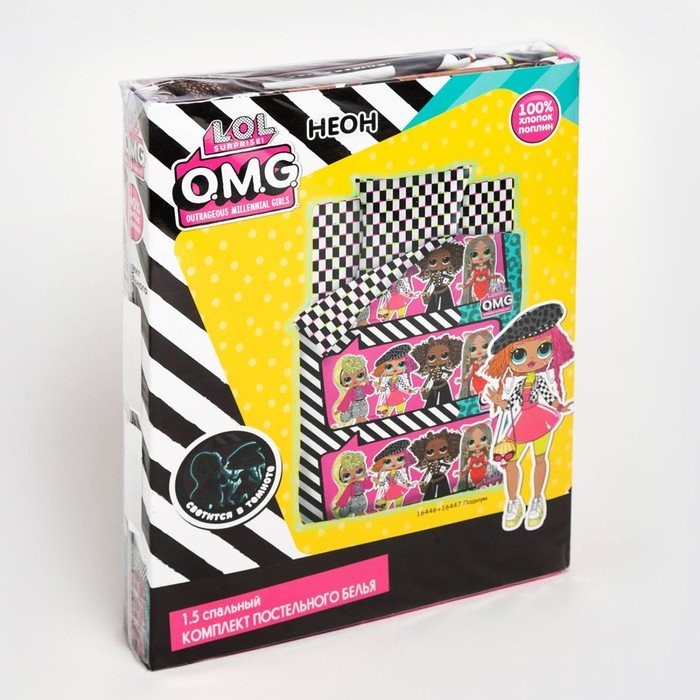 Постельное бельё 1.5сп LOL OMG Neon «Подиум» 143×215, 150×214, 70×70−1шт, поплин 105г/м хл100%