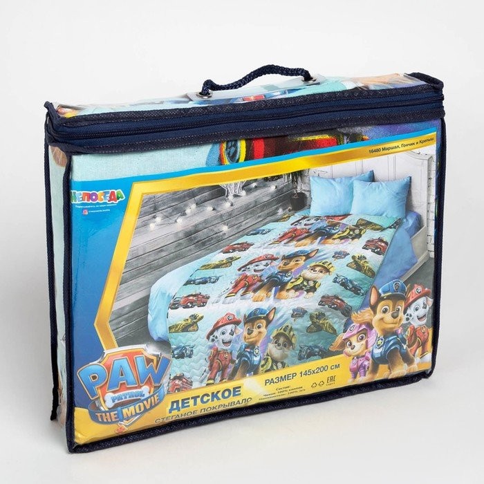 Покрывало стеганое Щенячий патруль «Маршал, Гонщик и Крепыш» 145х200см, поплин 105г