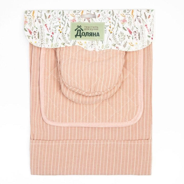 Кухонный набор «Полосы» фартук 60х70см, прихватка 20х20см, варежка 12х15см, цвет бежевый, 50%п/э, 50%хл