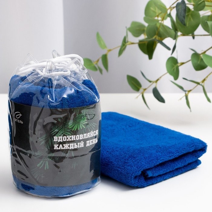 Полотенце подарочное Этель «Вдохновляйся» цв.синий, 50х90см, 100% хл, 340 г/м2