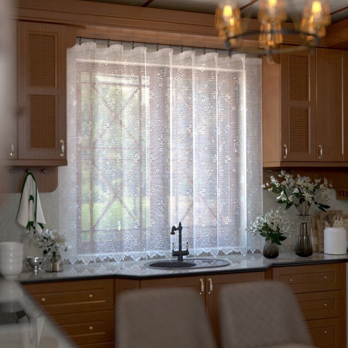 Тюль кухонная со шторной лентой, 145×285 см, цвет белый, пэ