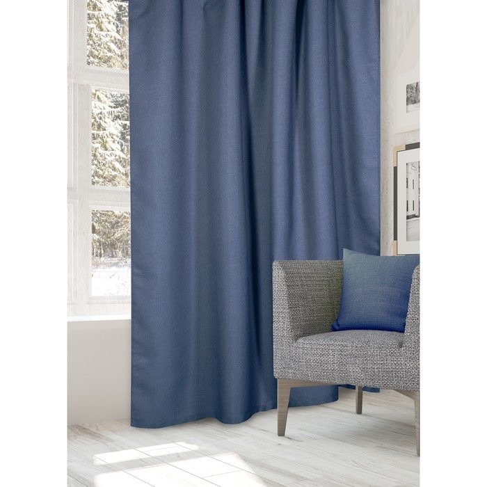 Штора портьерная «Этель» 200*270 см Натура голубой, б/держателя 100% п/э