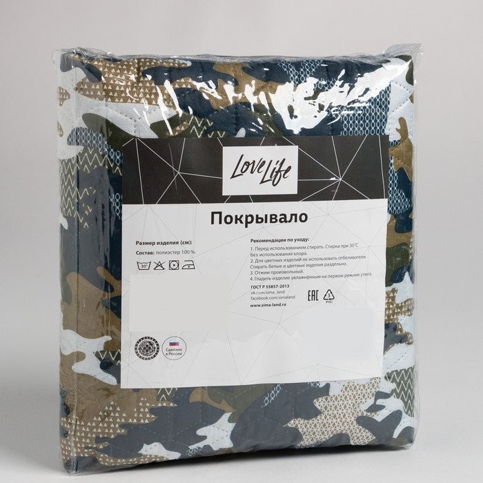 Покрывало «LoveLife» Милитари, ультрастеп 150×210 ± 5 см, пл 210 г/м