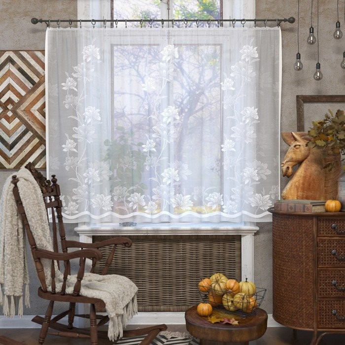 Тип тюли: Готовый, Короткий, С рисунком