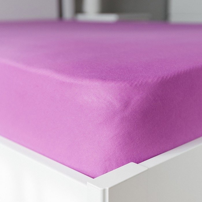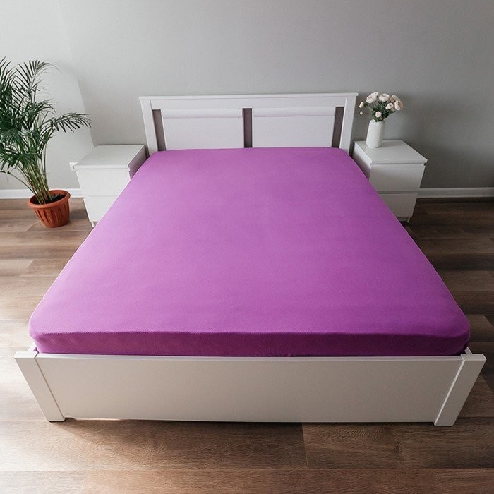 Трикотажная простынь на резинке 160х200х25см, фиолетовый кулирка, 120г/м хл100%