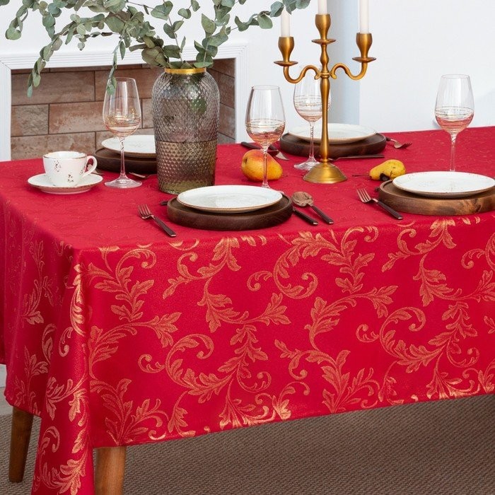 Скатерть Этель «Patterns» цвет красный, 142*220 +/-3 см, 115 ±10 гр,100% п/э