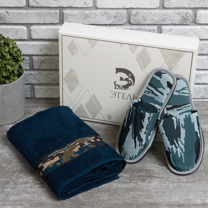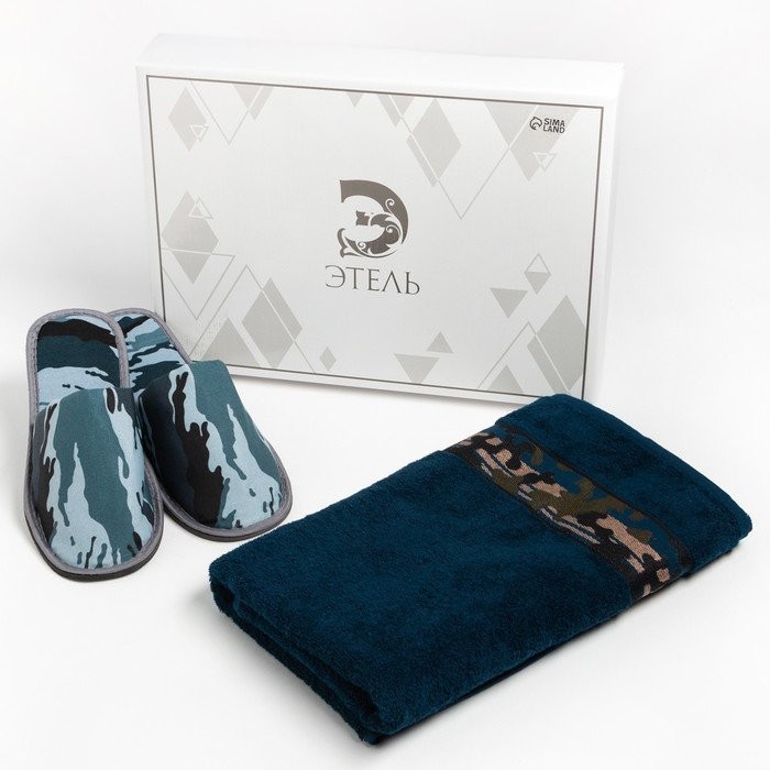 Набор подарочный Этель «Милитари DarkBlue» полотенце 70*130 см+тапки муж 42 р-р