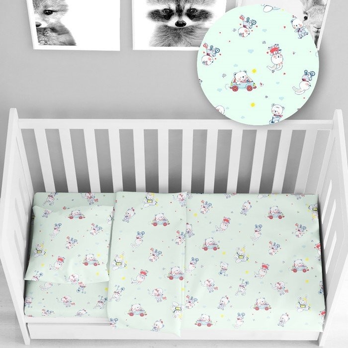 Постельное бельё детский Русский дом «Веселый транспорт мятный» 112×147, 100×150, 40х60см, бязь 120 г/м