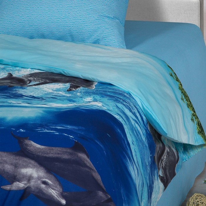 Постельное бельё евро «Голубая лагуна» 200х215см, 220х240см, 70х70см 2шт