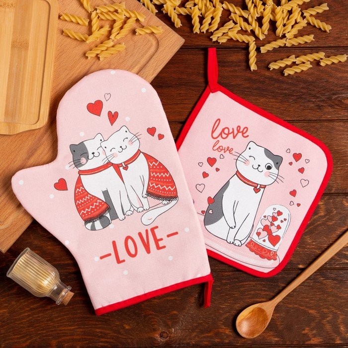 Набор кухонный Love, варежка-прихватка 20х28см, прихватка 19х19см, 100% хл