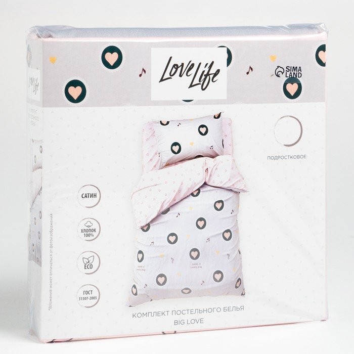 Постельное белье 1.5 сп «LoveLife» Big love, 143×215 см,150×214 см,50×70 см-1 шт. сатин
