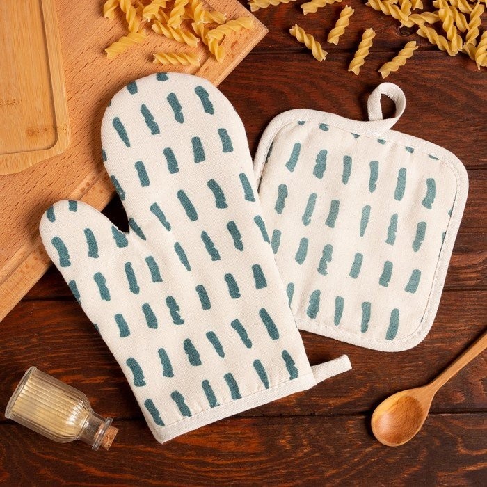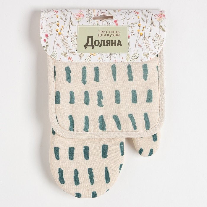 Кухонный набор (2 предмета) Доляна «Тенденция», цвет зеленый, прихватка 17×17 см, варежка 26×16 см, 100% п/э