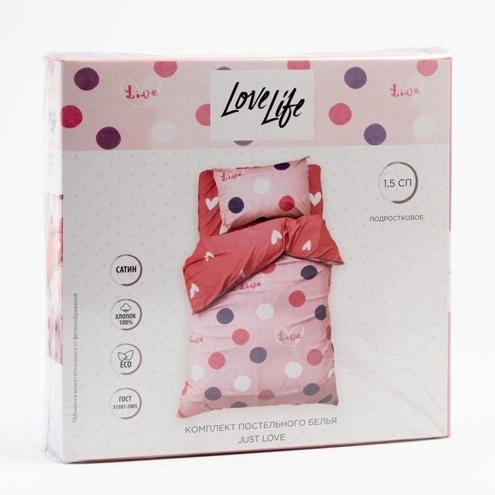 Постельное бельё 1.5 сп «LoveLife» Just love, 143×215 см,150×214 см,50×70 см-1 шт. сатин