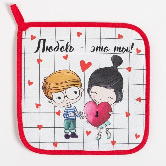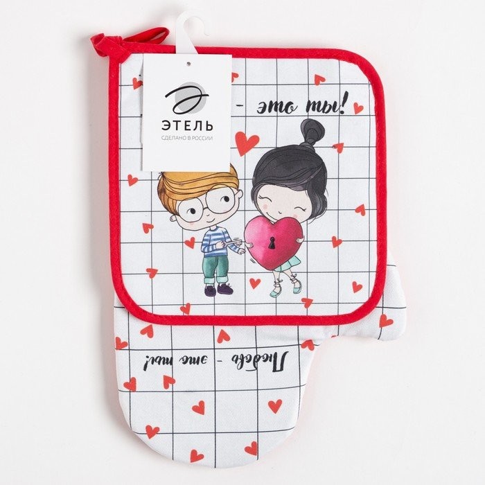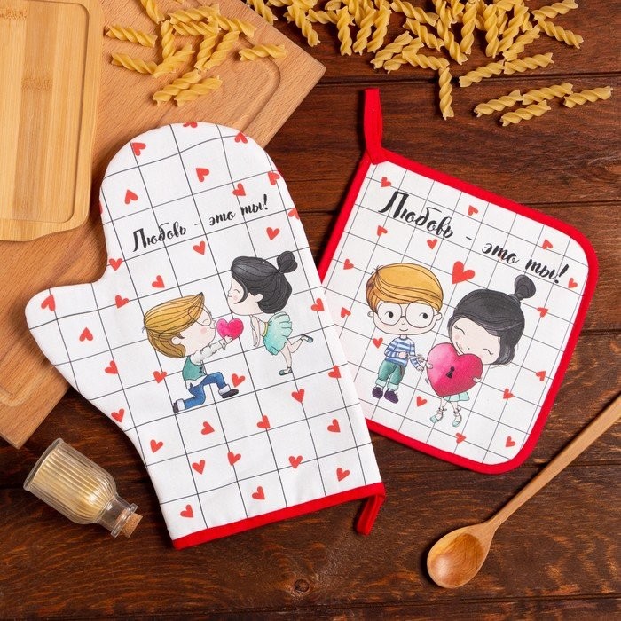Набор Кухонный «Любовь — это ты», варежка-прихватка 20х28см, прихватка 19х19см, 100% хл
