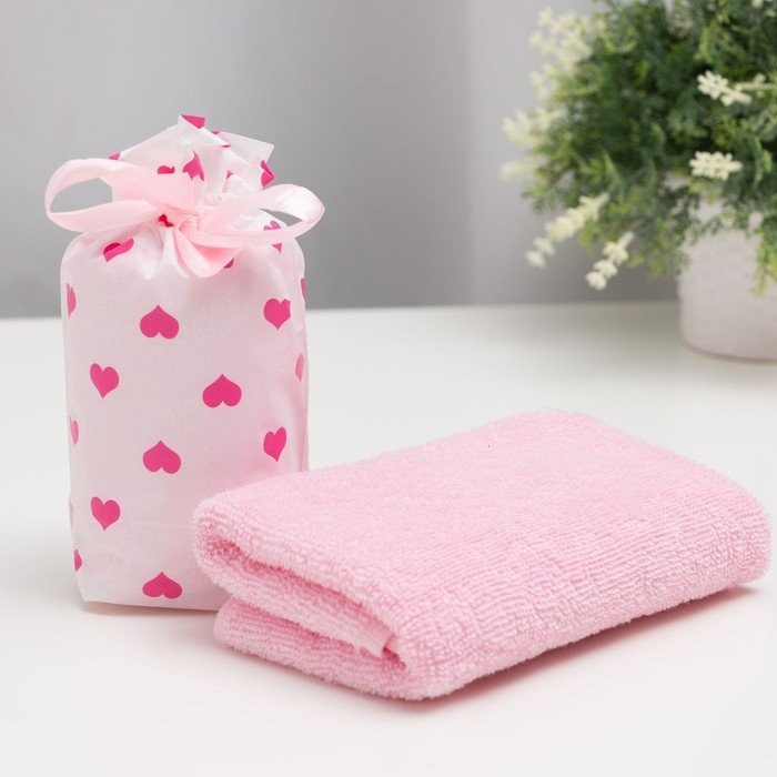 Полотенце в мешочке Экономь и Я «Сердечки» 30*60 см, 100% хлопок, 320 гр/м2