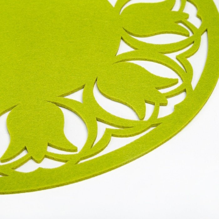 Салфетка декоративная Доляна"Тюльпаны» цвет зеленый, d 30 см, 100% п/э, фетр