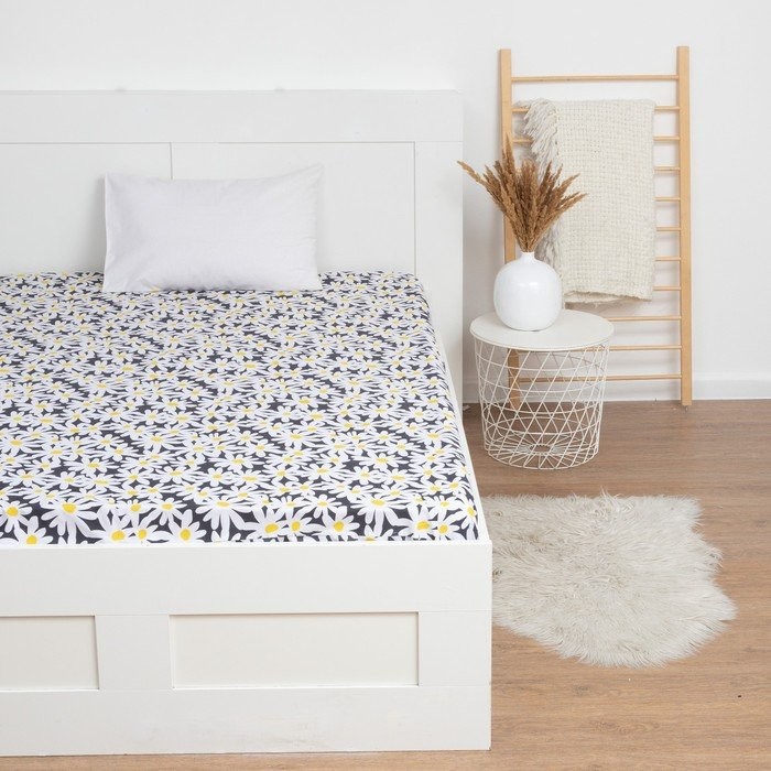 Простыня на резинке LoveLife 140*200*25см, «Ромашки», 100% хлопок, сатин, 125г/м²