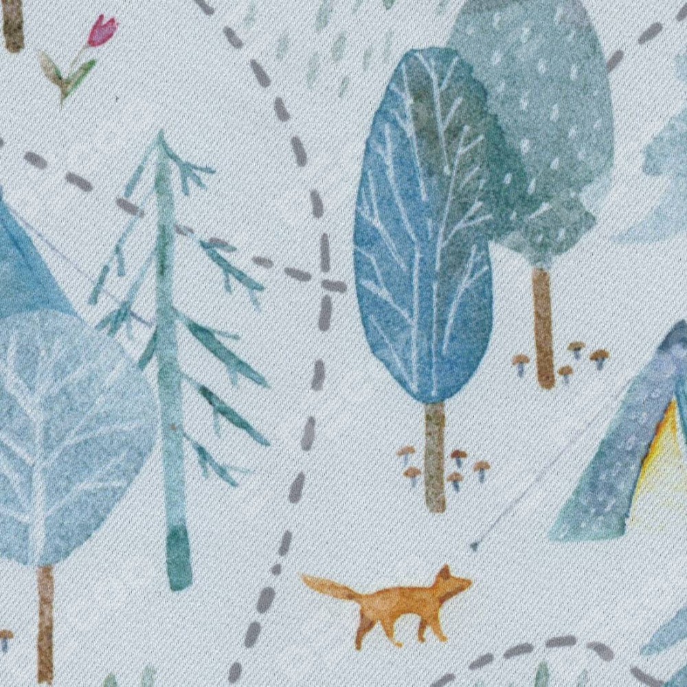 Римская штора день-ночь производителя «Cortin», используется для проёма, пошита из двух полотен, с лицевой блэкаут с нанесением сублимационной печати «Лесистая местность», вторая ткань тюль (по стандарту комплектуется тюль белого цвета артикул V-01). Имеет универсальный механизм и подходит для монтажа: на потолок, на стену и в нишу.