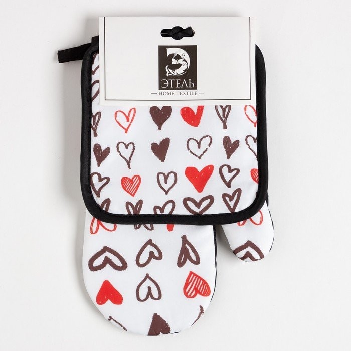 Кухонный набор (2 предмета) Этель LoveLife «Сердечки», прихватка 17×17 см, рукавичка 26×16 см, 100% п/э