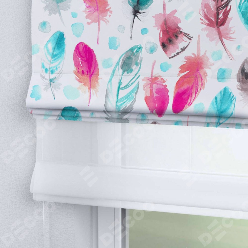 Римская штора «Кортин» день-ночь «Перья» отлично подойдёт для интерьера: на балкон, в детскую и в кухню.