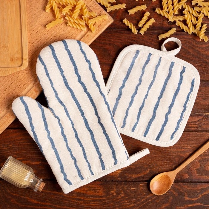 Кухонный набор (2 предмета) Доляна «Линии», прихватка 17×17 см, варежка 26×16 см, 100% п/э