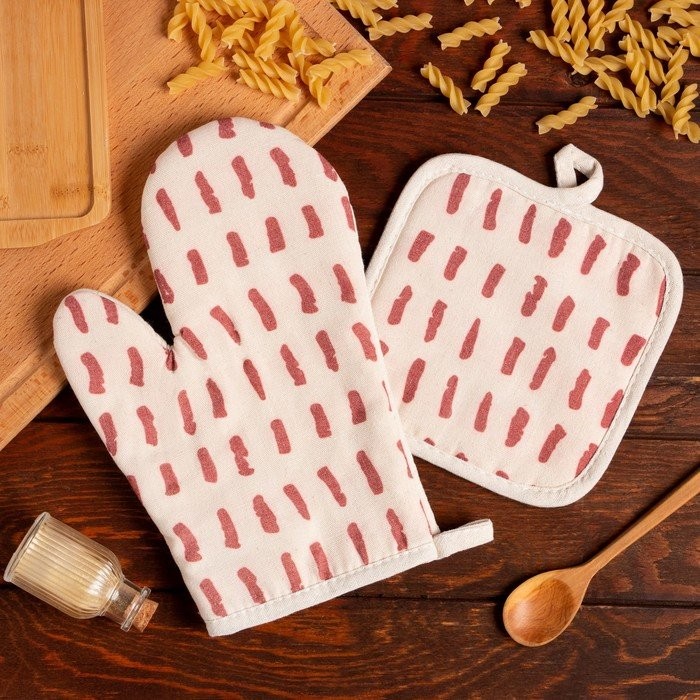 Кухонный набор (2 предмета) Доляна «Тенденция», цвет красный, прихватка 17×17 см, варежка 26×16 см, 100% п/э