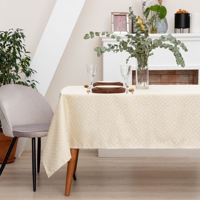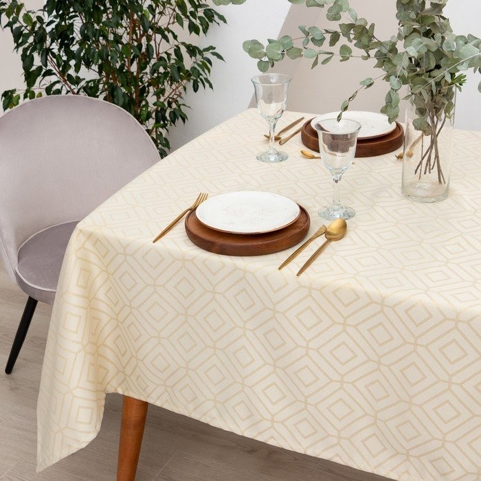 Скатерть Этель «Ромбы» цв.бежевый, 142*220 +/-3 см, 115 ±10 гр,100%