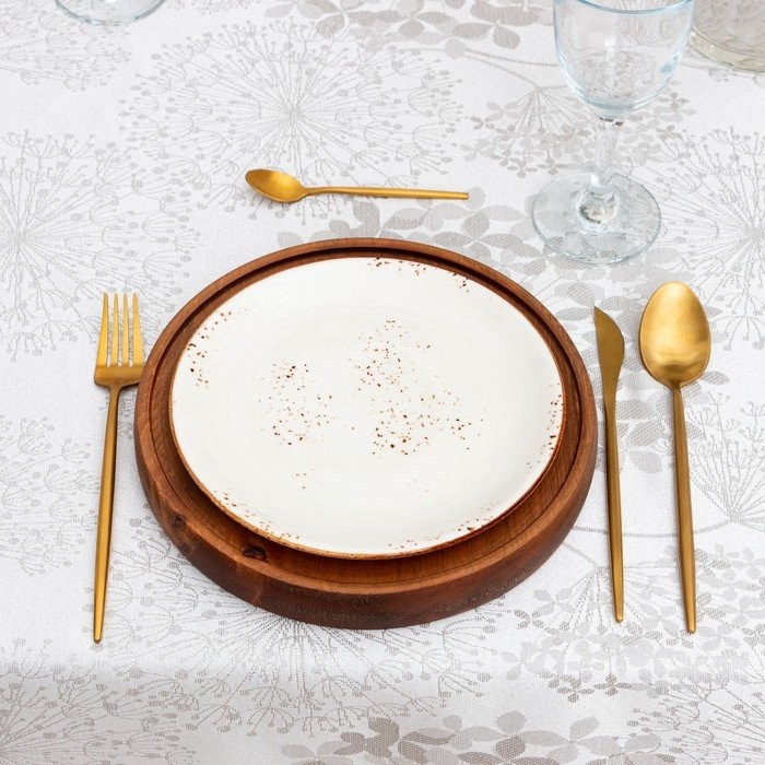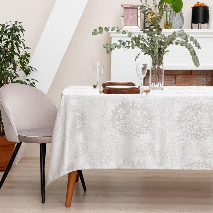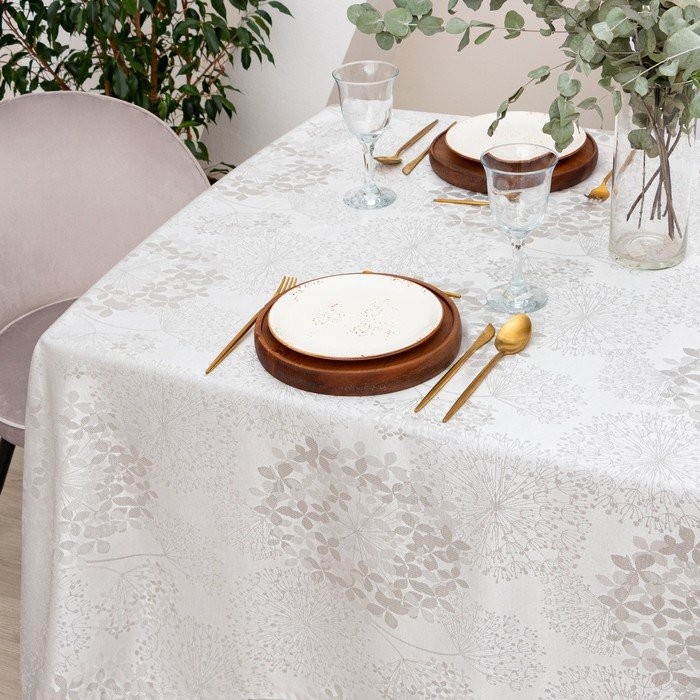 Скатерть Этель «Flowers» цв.серебро, 142*283 +/-3 см, 115 ±10 гр,100% п/э