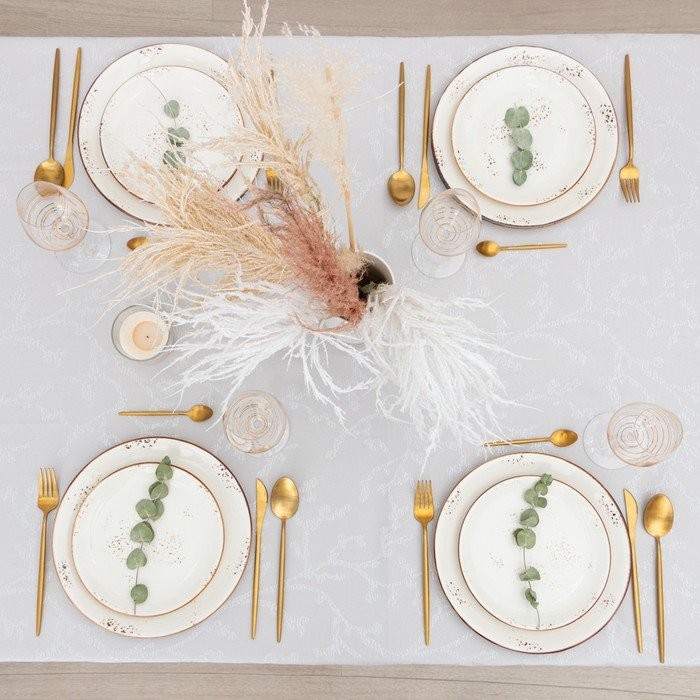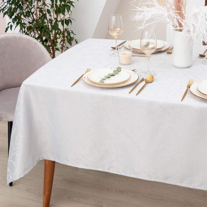 Скатерть Этель «Ветвь» цв.серебро, 142*283 +/-3 см, 115 ±10 гр,100% п/э