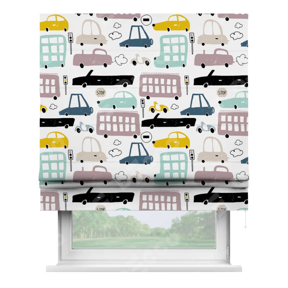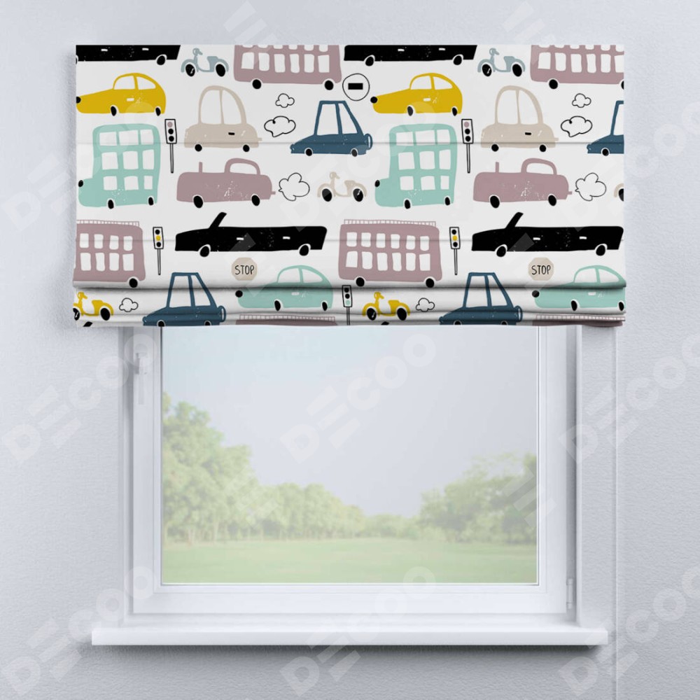 Римская штора «Кортин» для проема «Красочный трафик» отлично подойдёт для интерьера: в детскую.