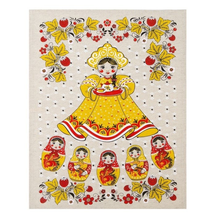 Полотенце кухонное Девица красавица-хохлома 45×60 см, полулён, 160 г/м2