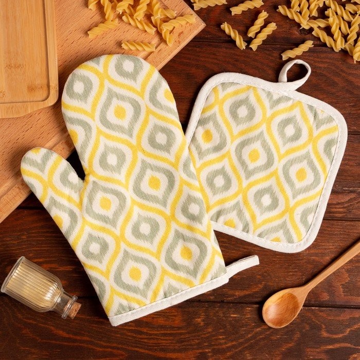 Кухонный набор (2 предмета) Доляна «Волны», прихватка 17×17 см, варежка 26×16 см, 100% п/э