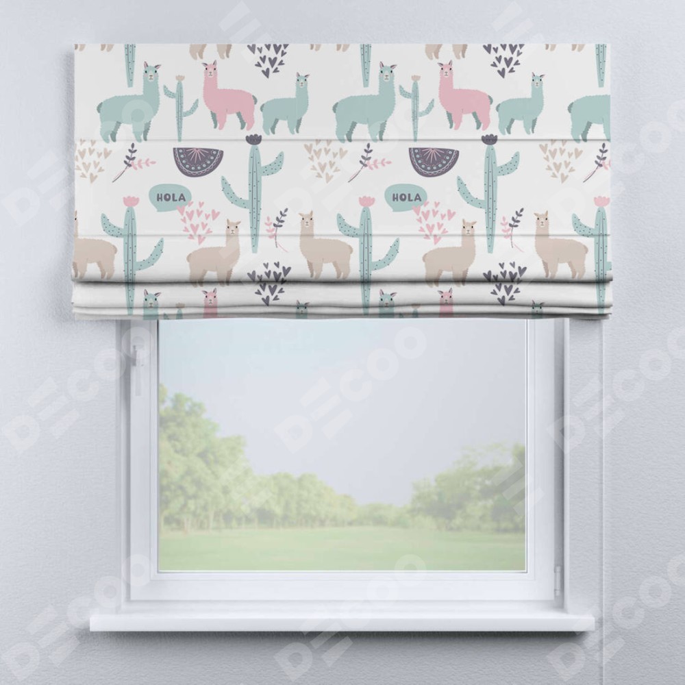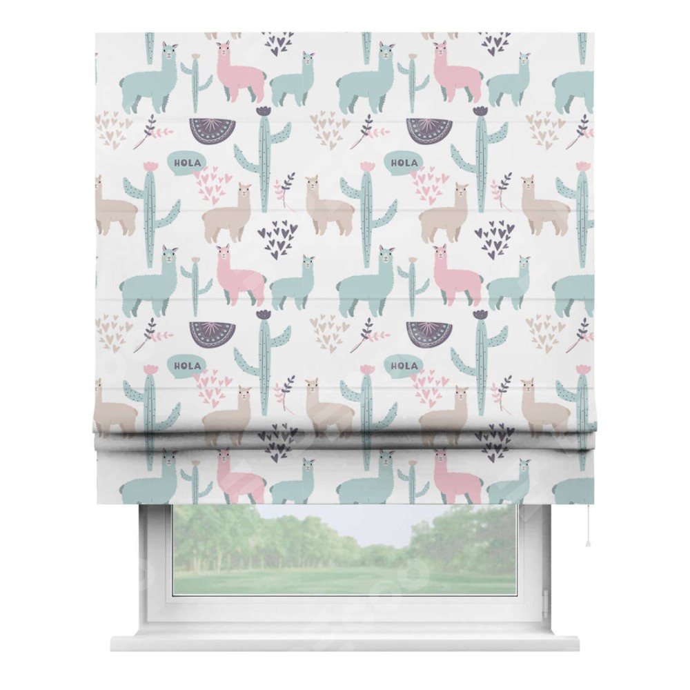 Римская штора «Кортин» для проема «Милый лама» отлично подойдёт для интерьера: в детскую.