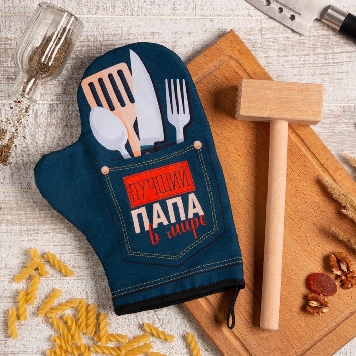 Кухонныйнабор «Лучший папа», варежка-прихватка 20х28см, молоток деревян.