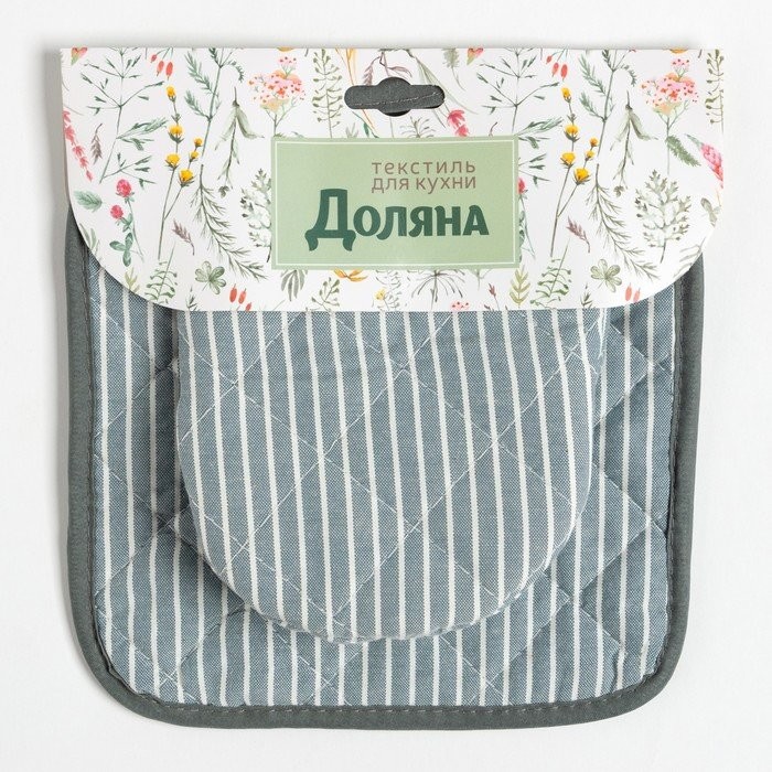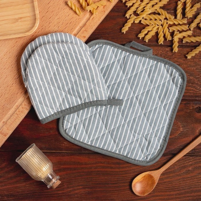 Кухонныйнабор Доляна «Полосы», прихватка20х20см, варежка12х15см, серый, 50%п/э, 50%хл