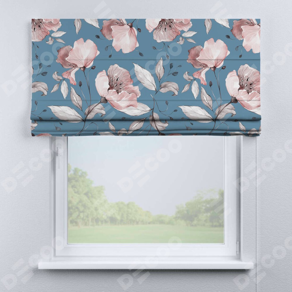 Римская штора производителя «Cortin», используется для проёма, пошита из ткани блэкаут с нанесением сублимационной печати «Розовая лагуна». Имеет универсальный механизм и подходит для монтажа: на потолок, на стену и в нишу.