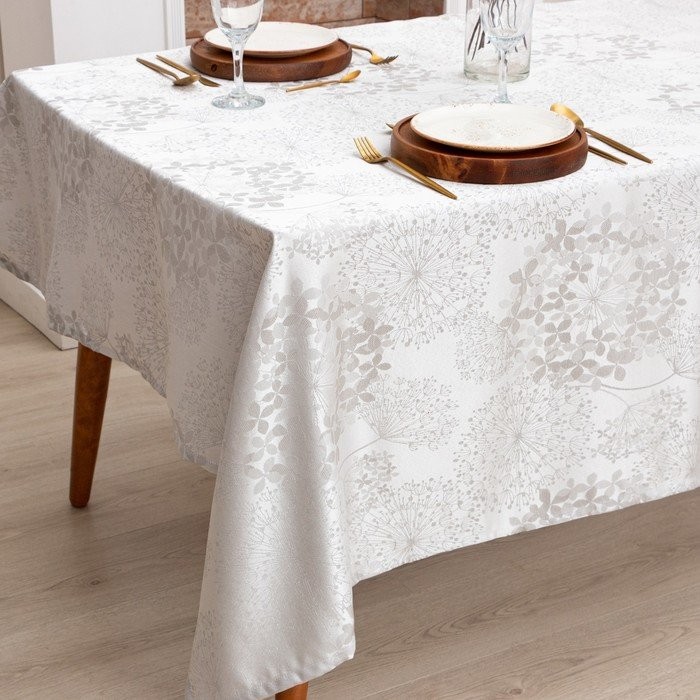 Скатерть Этель «Flowers» цв.серебро, 142*180 +/-3 см, 115 ±10 гр,100% п/э
