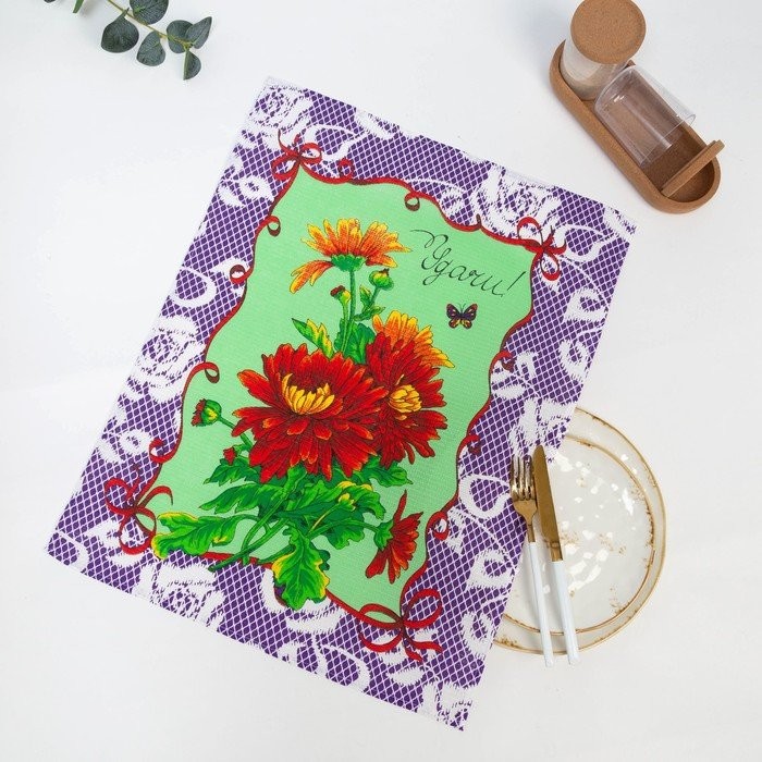 Полотенце 45×60 см, Удачи, сиреневый, вафля, 160 гр/м2, хлопок 100%