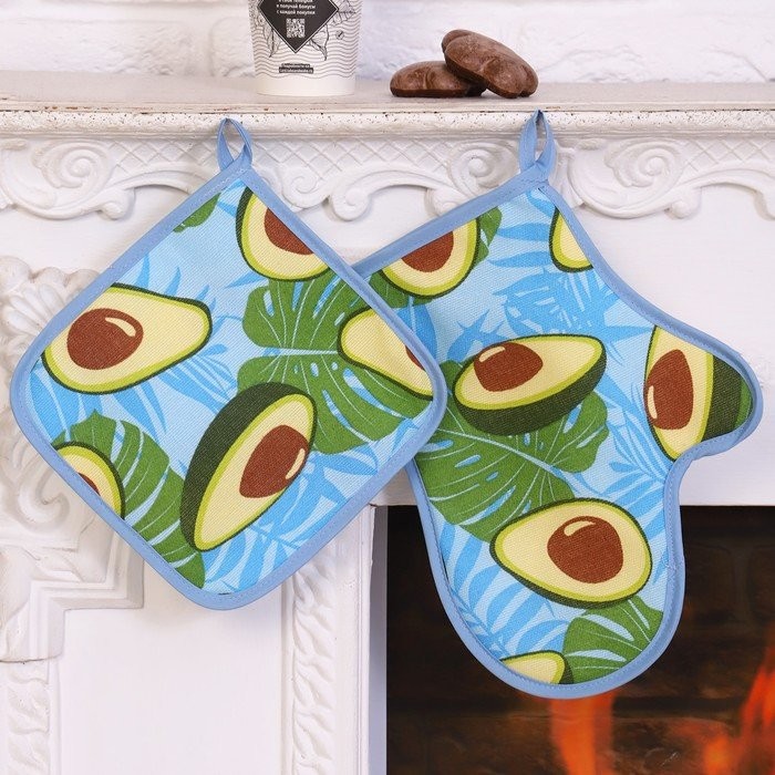 Набор кухонный Авокадо 224 (варежка+прихватка), синий, хл, рогожка