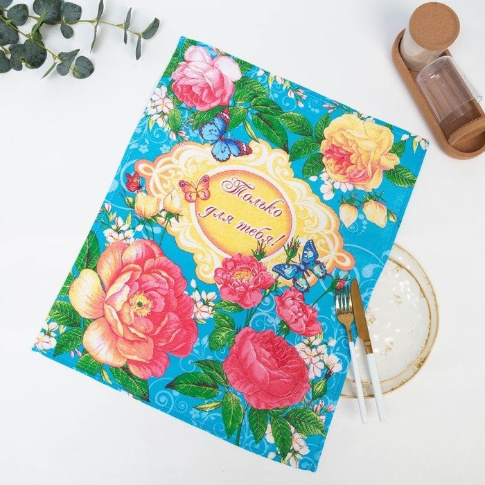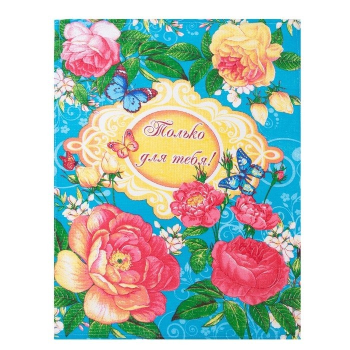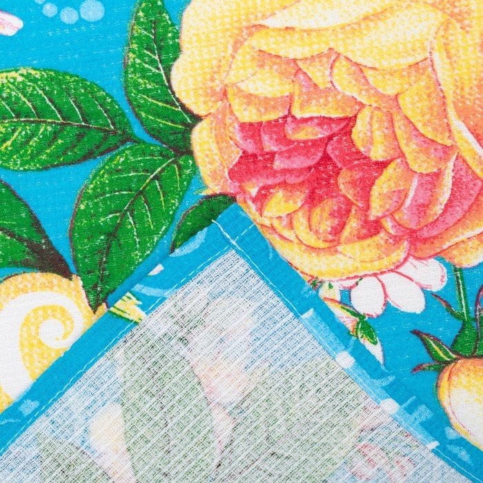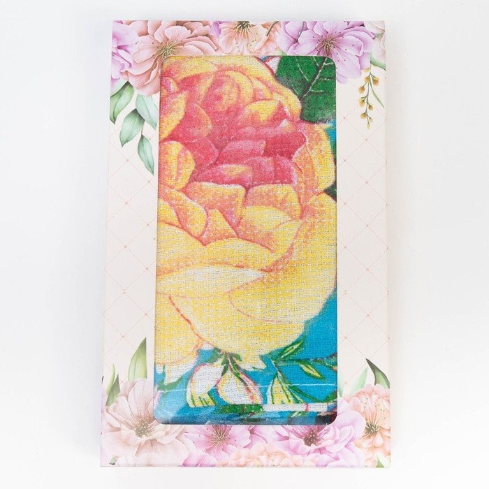 Полотенце в коробке 45×60 см, Английская роза, бирюза, вафля, 160 гр/м2, хлопок 100%
