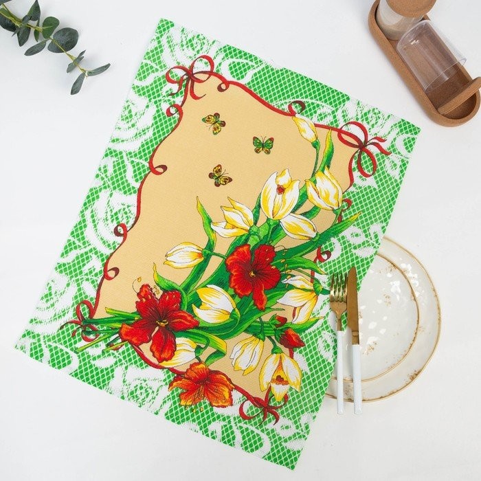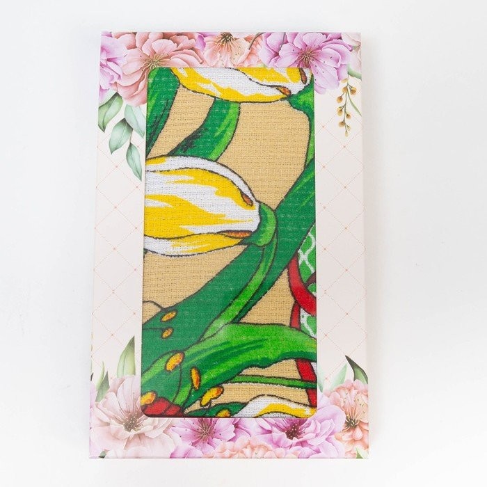 Полотенце в коробке 45×60 см, Цветы, салатовый, вафля, 160 гр/м2, хлопок 100%