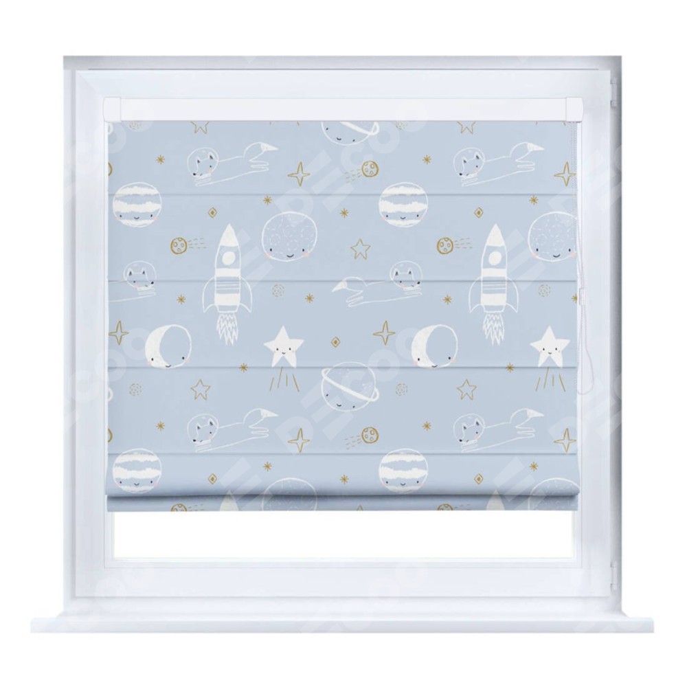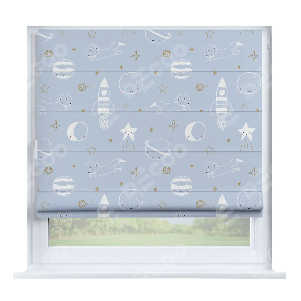 Римская штора «Кортин» на створку «Прекрасная вселенная» отлично подойдёт для интерьера: в детскую.