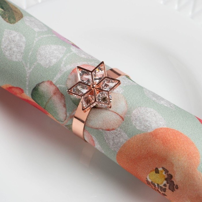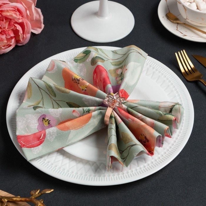 Набор салфеток с декорат. кольцами «Цветочный узор» 46х46см — 4 шт, 100% хл, саржа 190гр/м2